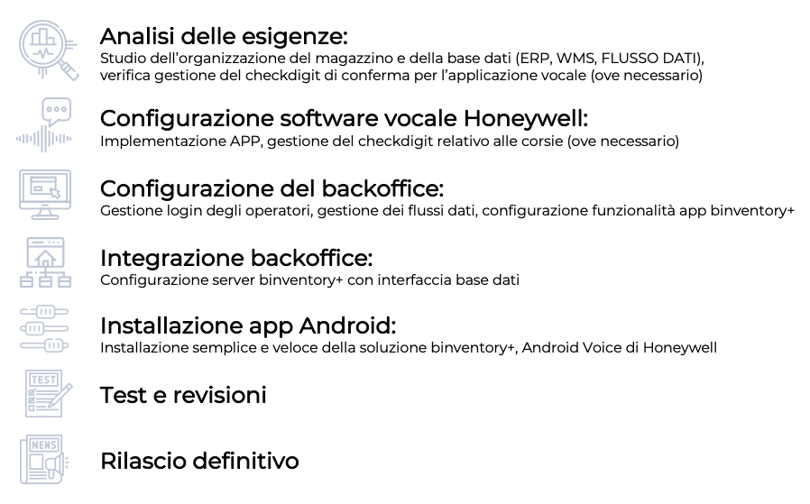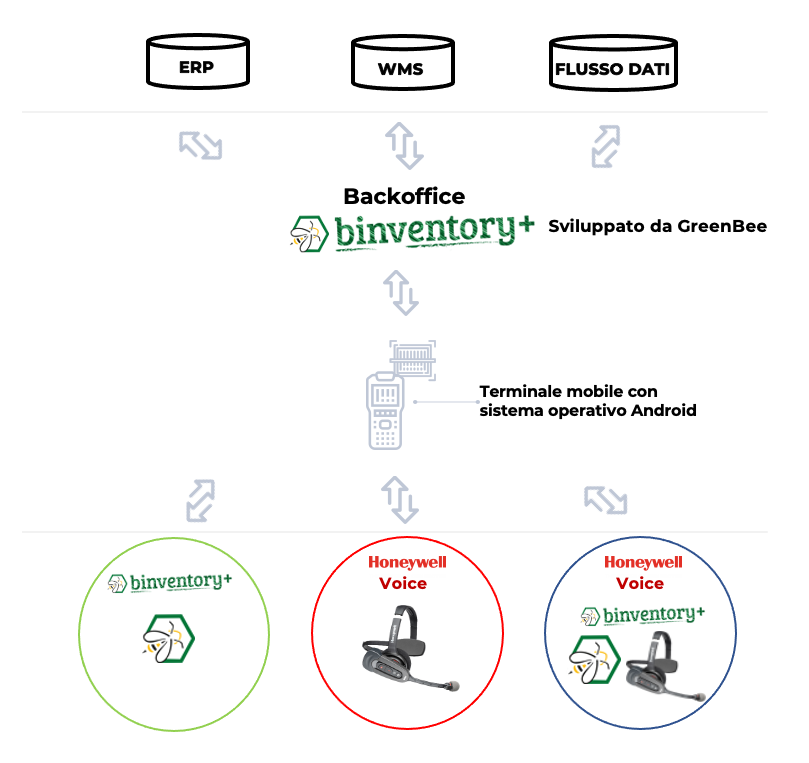 Nei terminali mobili è possibile installare l’applicazione binventory+, il sistema vocale Honeywell Voice oppure entrambe le applicazioni per una maggiore flessibilità e versatilità d’uso.